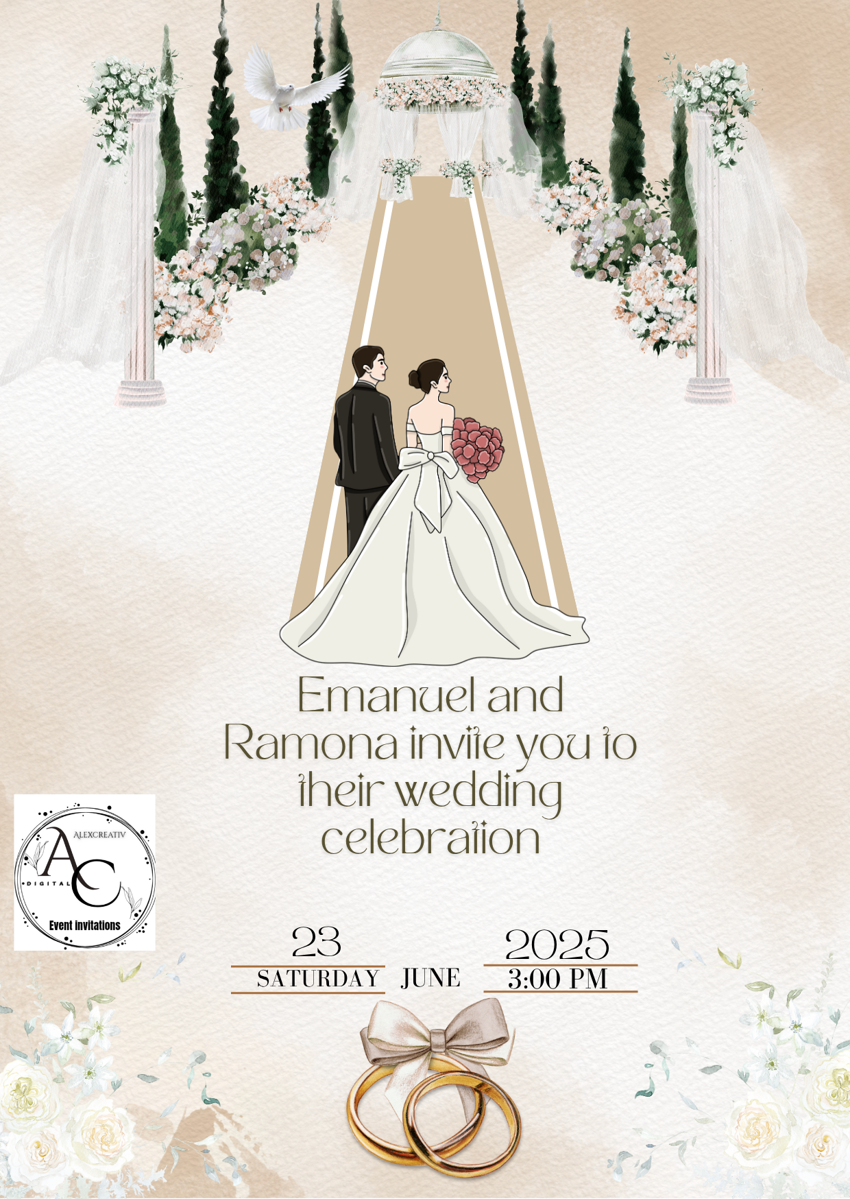 Share your love with a romantic digital wedding invitation, easy to customize and send online.